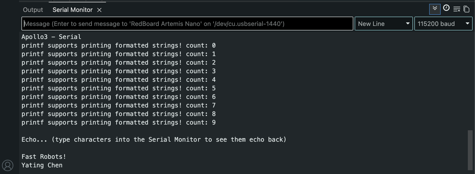 Serial monitor output: