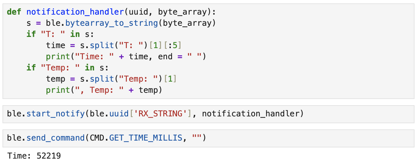 Set up a notification handler in Python that receives strings from the Artemis board and extracts the time.