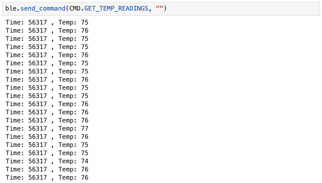 Add an array to store temperature readings corresponding with time. Create GET_TEMP_READINGS which loops through both arrays and sends each temperature reading with a time stamp.